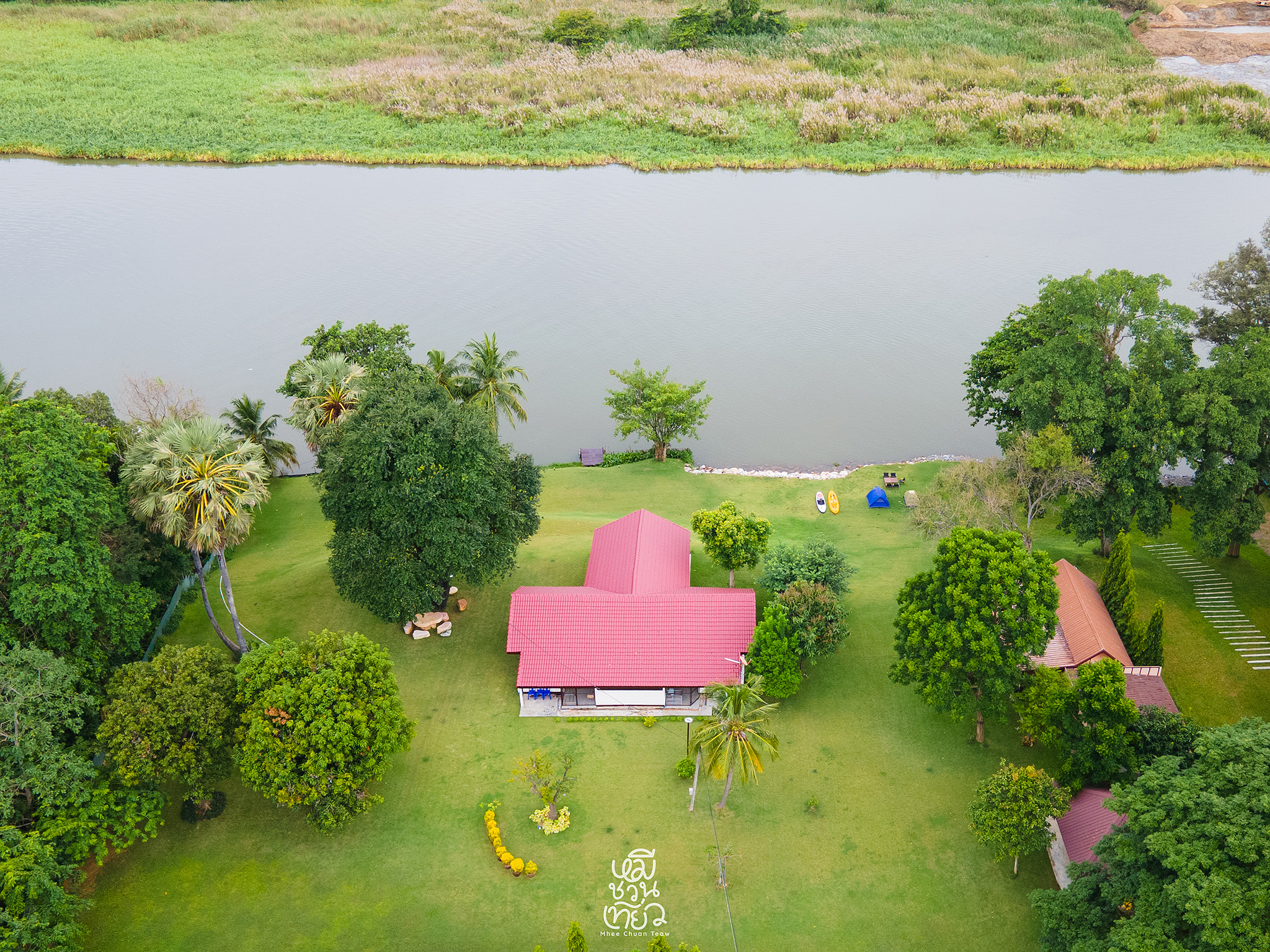 บ้านสุขสะแคว ที่พักริมน้ำกาญจนบุรี เป็นส่วนตัว เงียบสงบ