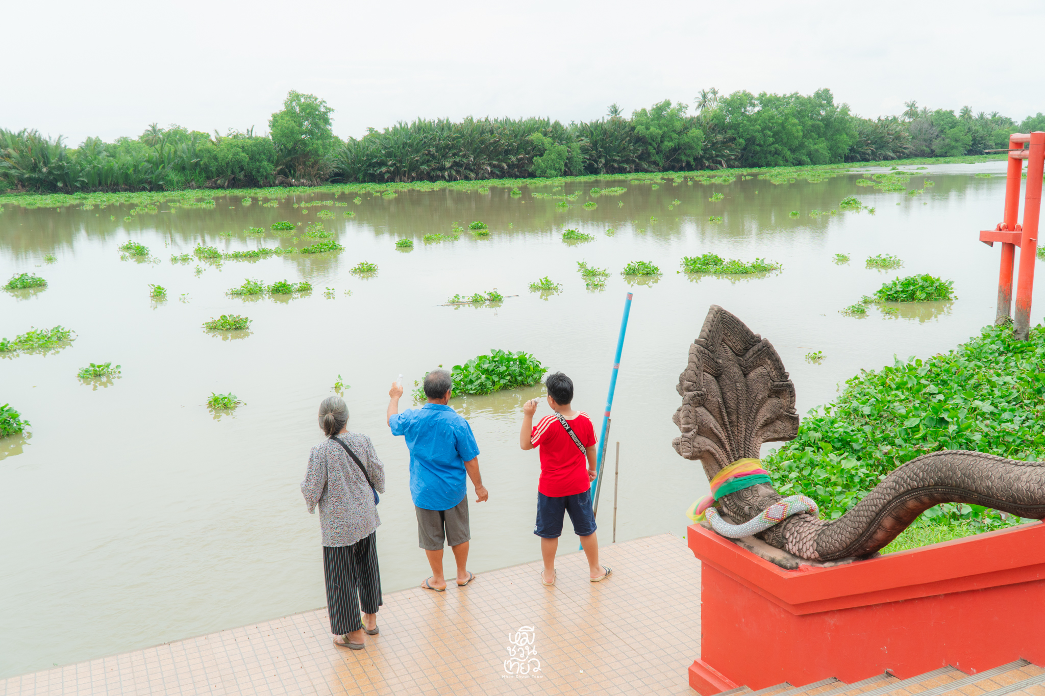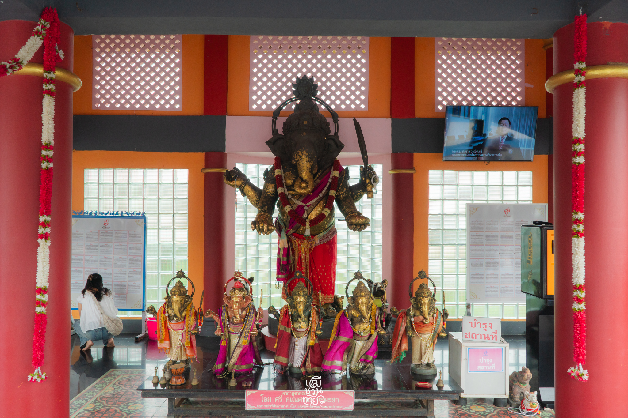 - ด้านหน้าเราจะเห็น องค์พระพิฆเนศ ด้านหลังคือ แม่น้ำบางปะกง ที่ไหลผ่านอย่างสงบ